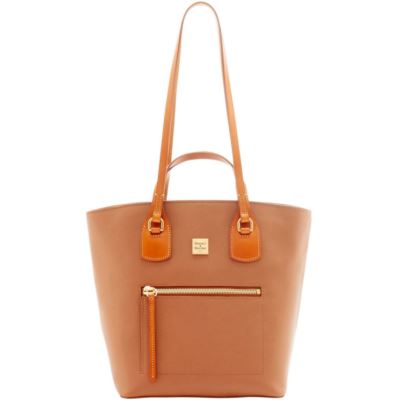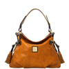 The Raleigh bags combine the best materials with expert craftsmanship and thoughtful design. It begins with Italian calfskin that is specially tanned to achieve a fine grain and supple hand, then add Vacchetta leather trim, satin gold tone hardware and durable cotton lining. Raleigh bags deliver chic style and reliable performance day in and day out. H 12 in. W 7 in. L 11 in. Outside zip pocket. One inside zip pocket. Two inside pockets. Inside key hook. Shoulder strap drop 12.5 in. Handle drop 3 in. Feet. Lined.